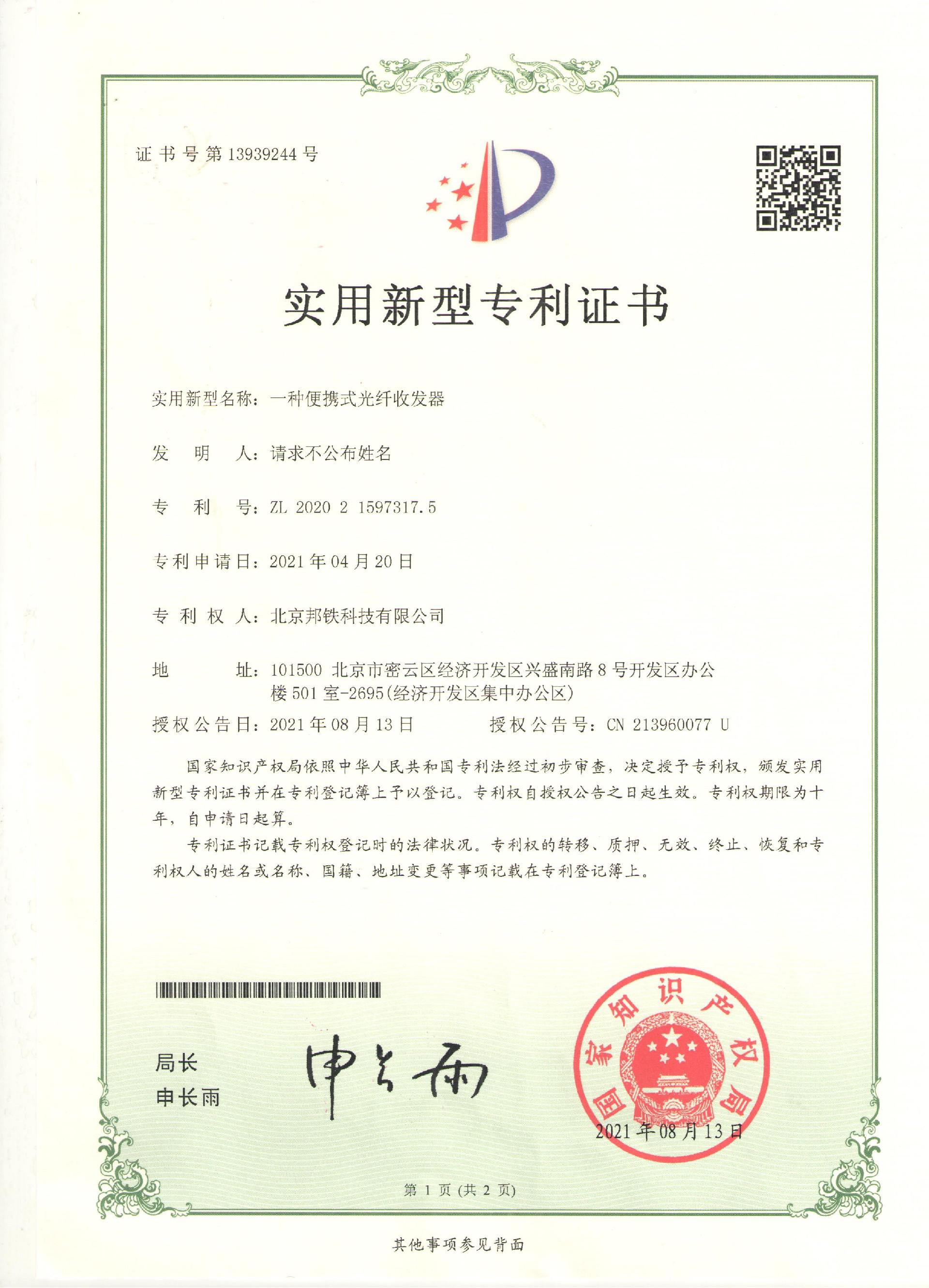 實用新型專利證書