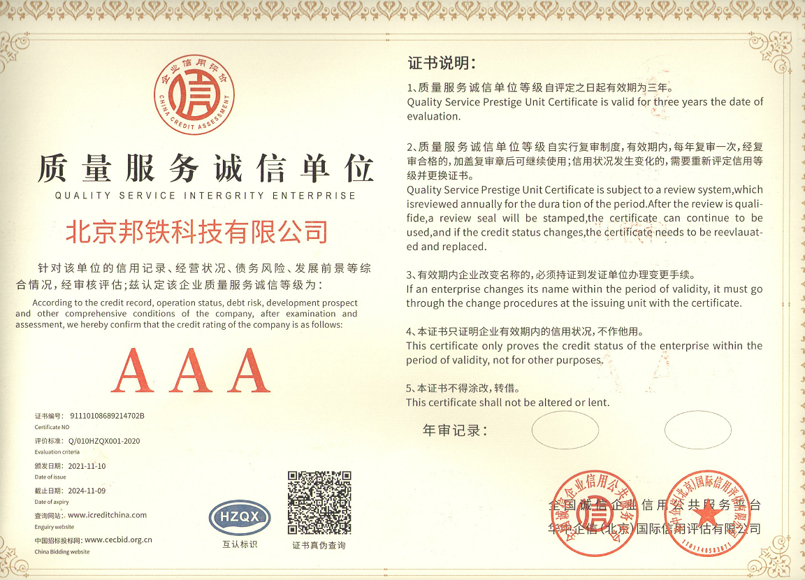 誠信經營示范單位-AAA證書
