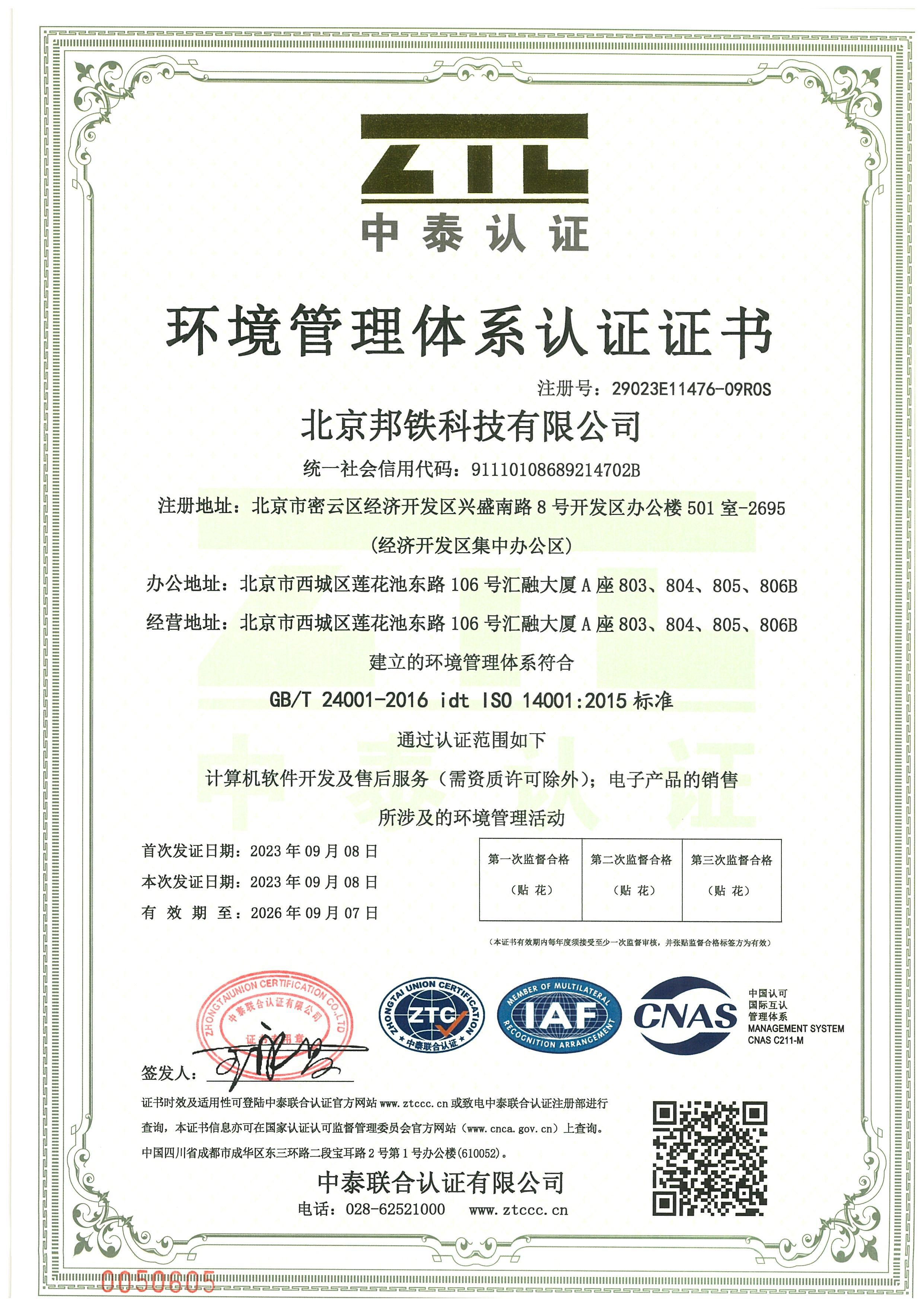 環境管理體系認證證書