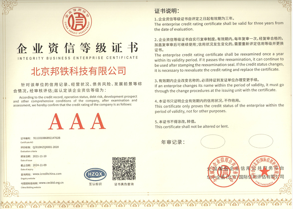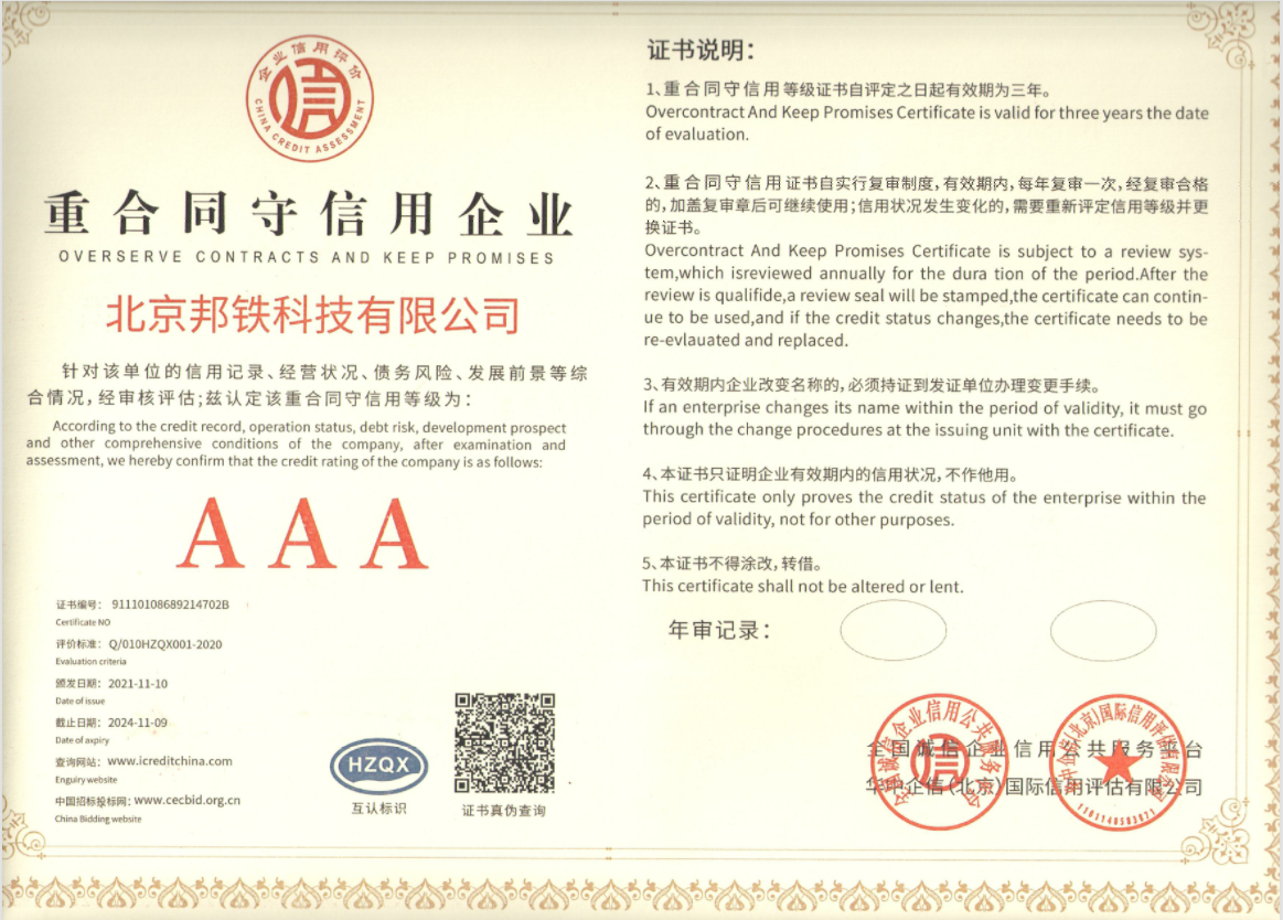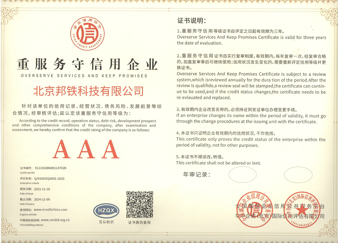 重服務(wù)信用企業(yè)-AAA證書(shū)